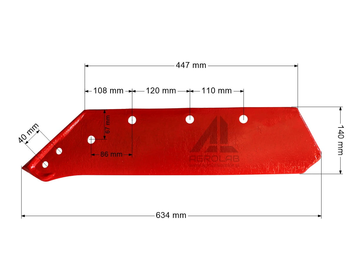 Wysokiej jakości zamiennik lemiesza przeznaczony do pługów marki Kverneland. Wykonany z hartowanej stali borowej, co zapewnia wyjątkową trwałość i odporność na ścieranie w każdych warunkach glebowych.